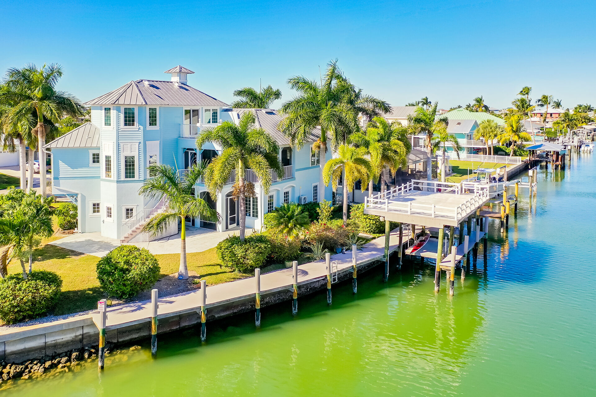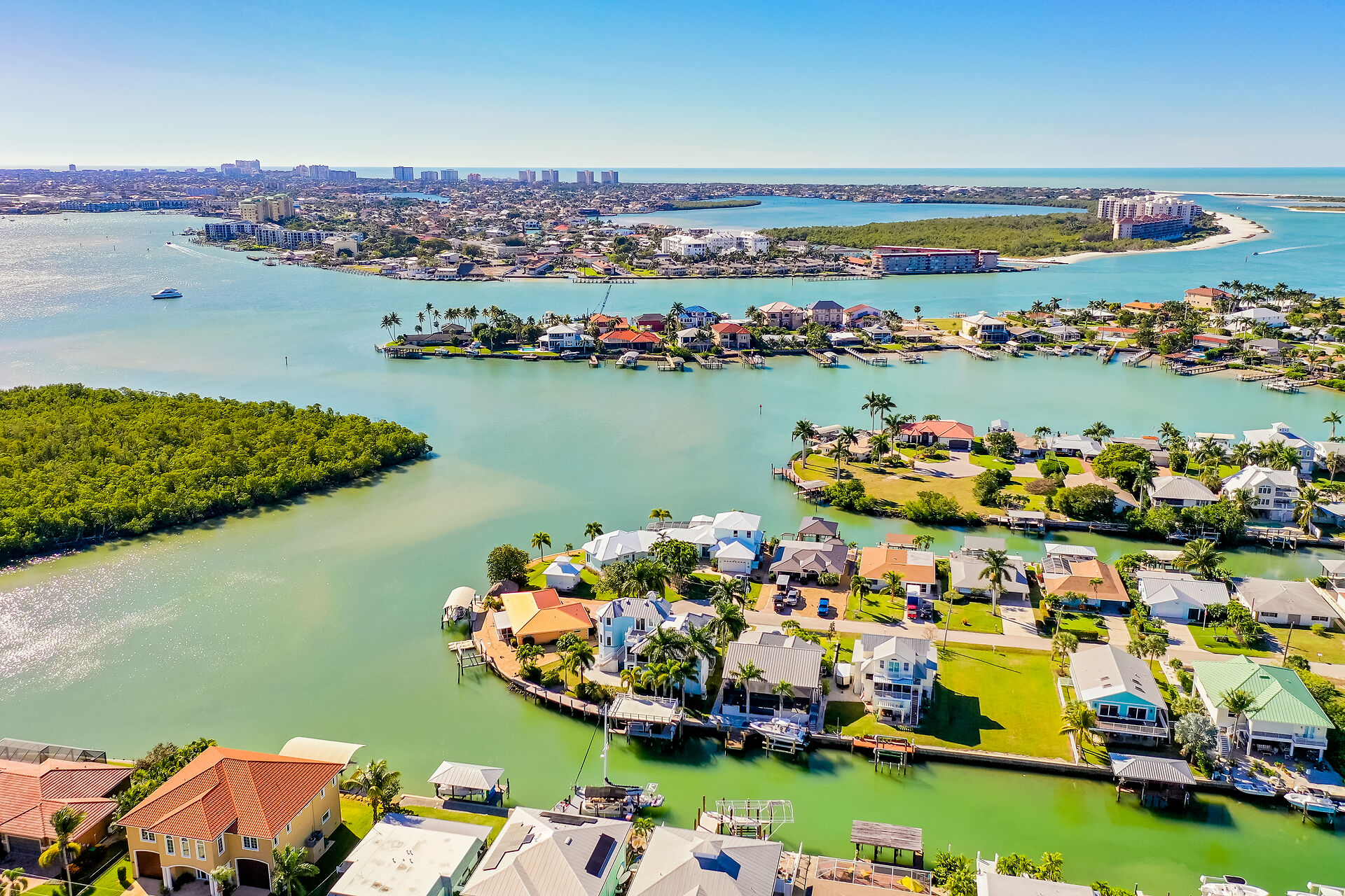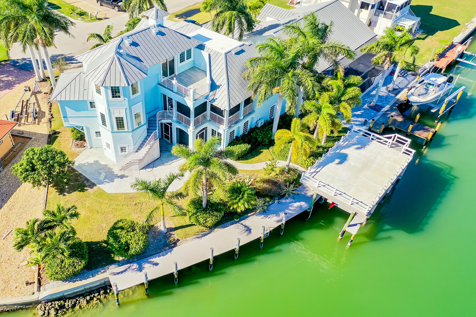 PRICED TO SELL! A Yachters Dream in Paradise is waiting for you in the Plantation Style Bayfront home on the Beautiful Isles of Capri in Naples Florida. There is 120' of DIRECT ACCESS deep waterfront with an 80' low maintenance dock that is partially covered with a large observation deck and an 8000' boat lift. This totally custom home features TWO large master bedrooms overlooking the Bay and the Rookery Bay Preserve, custom solid wood cabinets throughout, and high-end appliances. There is a luxurious living area on the second floor accessed via private elevator, with a large great room, dining room, Main Master Bedroom and guest room. The third floor features a Second Master Bedroom and bath with a loft den. Enjoy