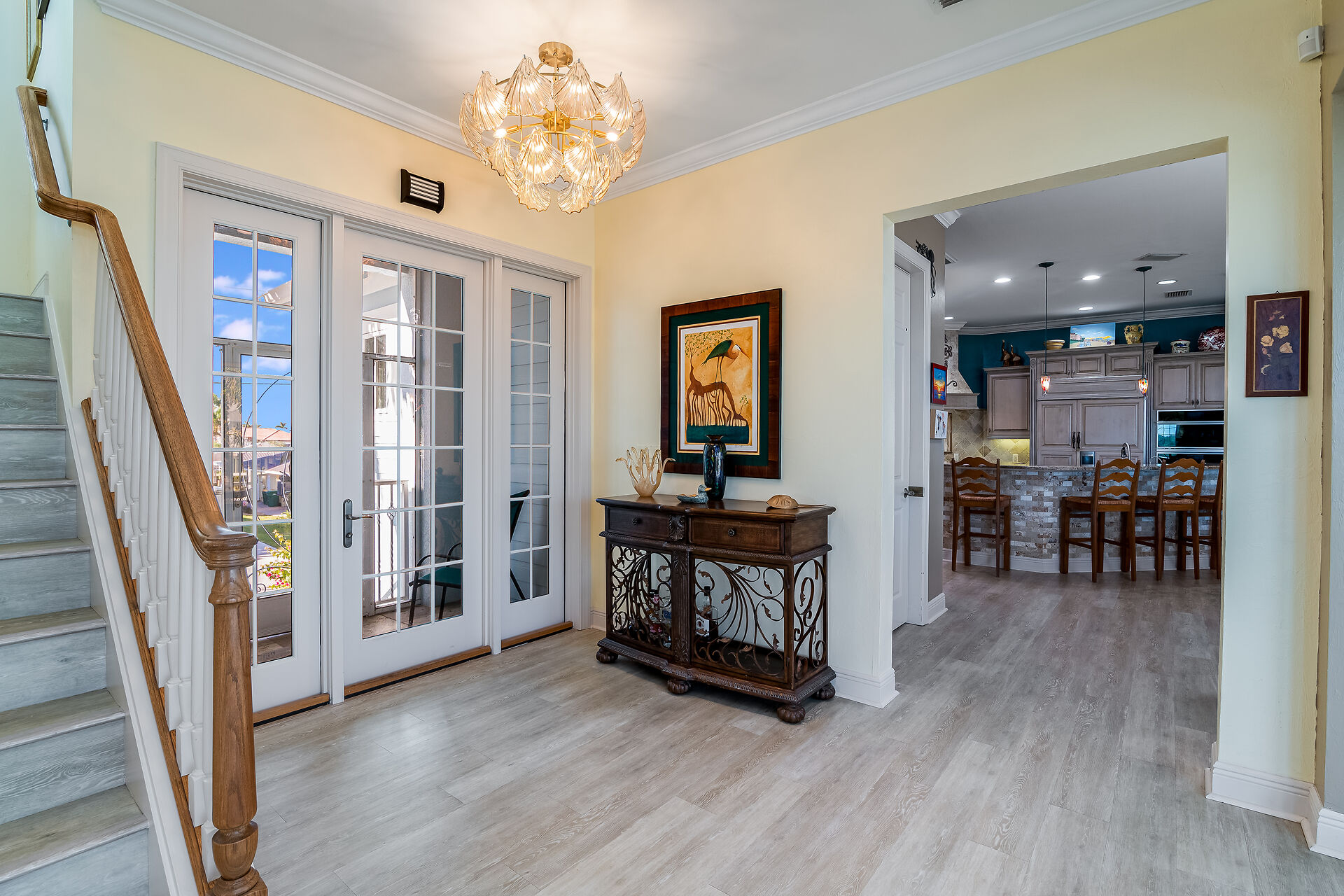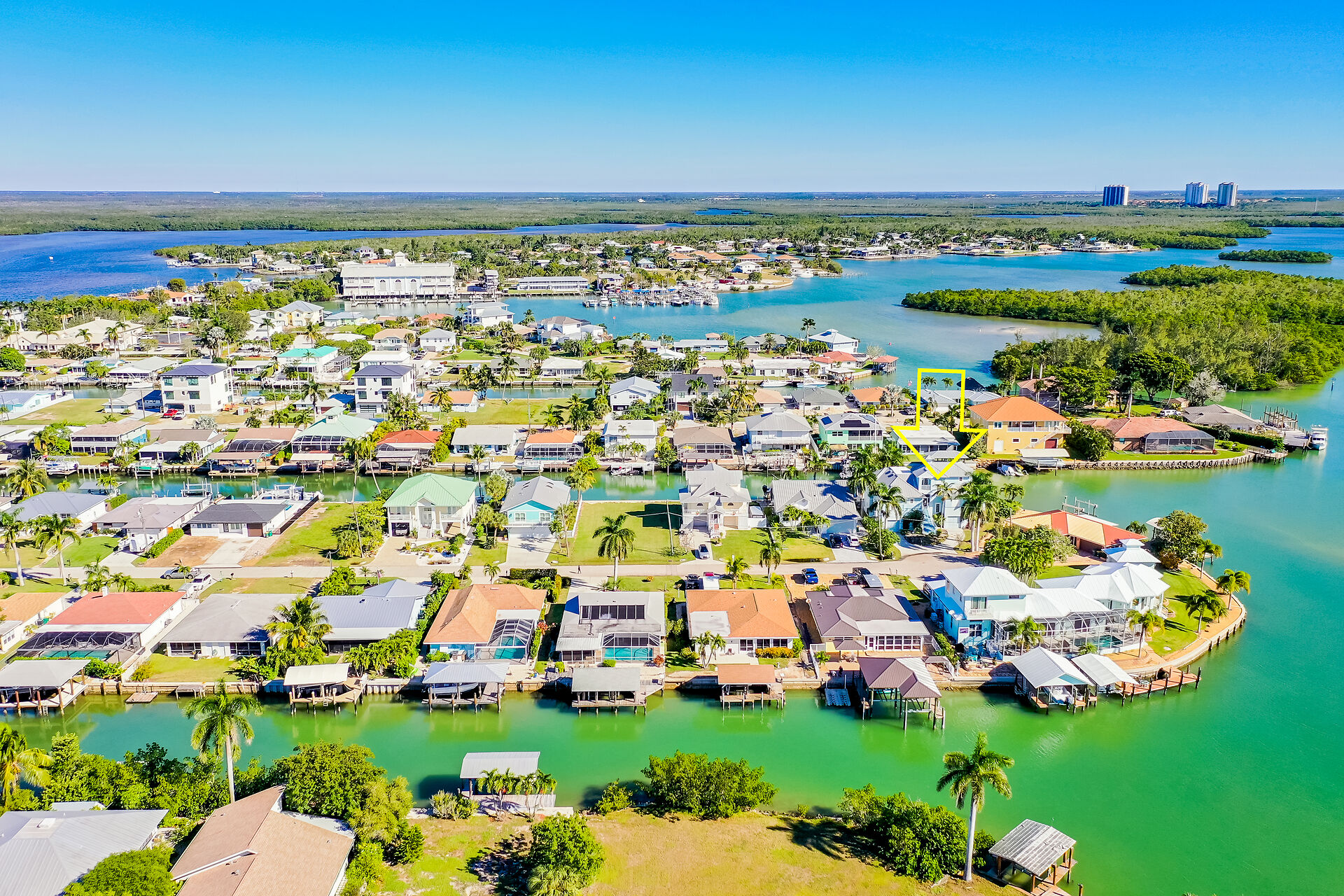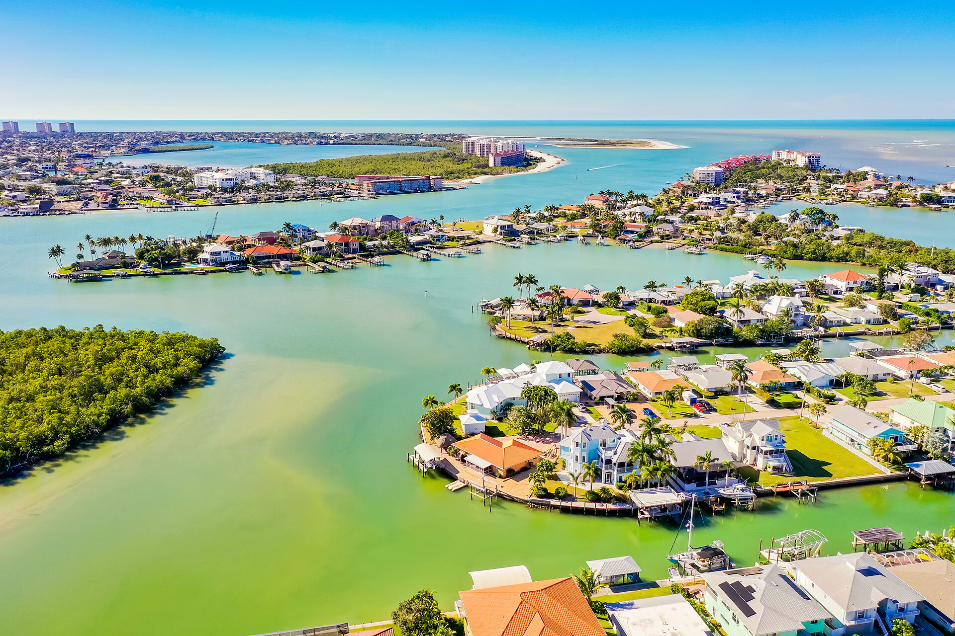 PRICED TO SELL! A Yachters Dream in Paradise is waiting for you in the Plantation Style Bayfront home on the Beautiful Isles of Capri in Naples Florida. There is 120' of DIRECT ACCESS deep waterfront with an 80' low maintenance dock that is partially covered with a large observation deck and an 8000' boat lift. This totally custom home features TWO large master bedrooms overlooking the Bay and the Rookery Bay Preserve, custom solid wood cabinets throughout, and high-end appliances. There is a luxurious living area on the second floor accessed via private elevator, with a large great room, dining room, Main Master Bedroom and guest room. The third floor features a Second Master Bedroom and bath with a loft den. Enjoy